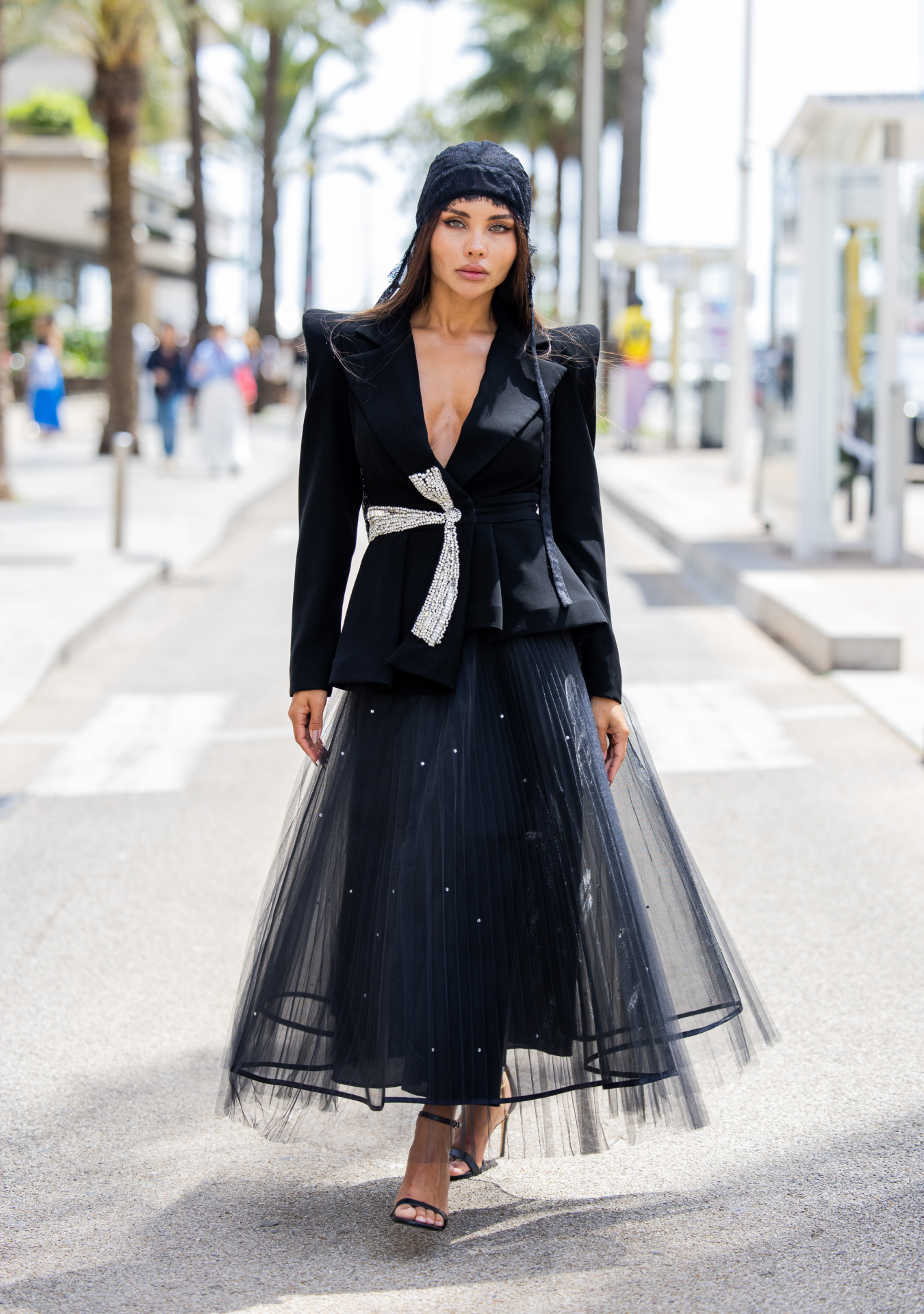 Costum cu Fusta de Tulle si Aplicatie Funda din Cristale